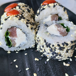 Рис, сливочный сыр, лосось терияки, огурец, стружка тунца, 110 гр.