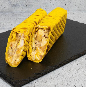 Белый лаваш, салат, помидор, огурец, курица, сыр, бекон, фирменный соус