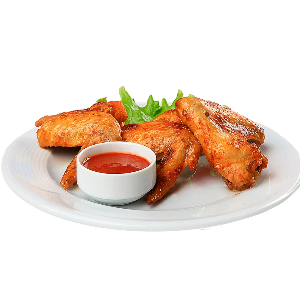Куриные крылышки, овощное ассорти, хлеб, соус, лаваш