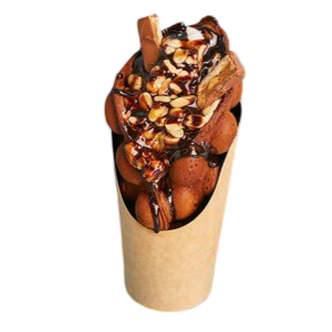 Вафля, сливочное мороженое, шоколадная паста, арахис, топпинг карамель