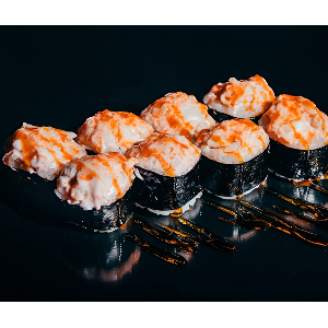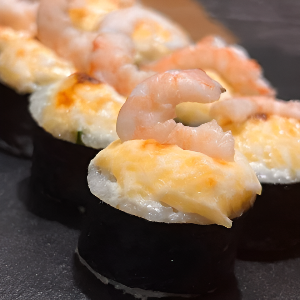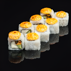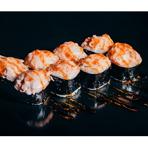 Рис, сливочный сыр, огурец, фирменная шапочка, креветка, 300 гр.