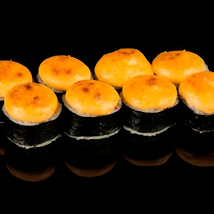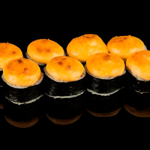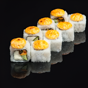Рис, сыр сливочный, снежный краб, огурец, икра тобико, фирменная сливочно- сырная шапочка, 140 гр.