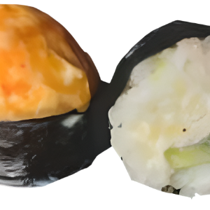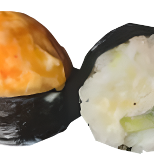Рис, сливочный сыр, огурец, фирменная шапочка, креветка, 150 гр.