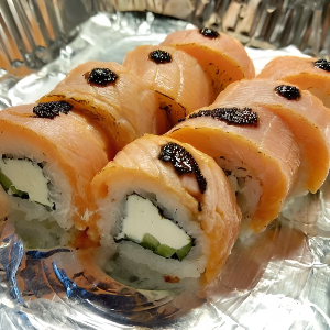 Рис, сливочный сыр, огурец, лосось, соус терияки 270 гр.
