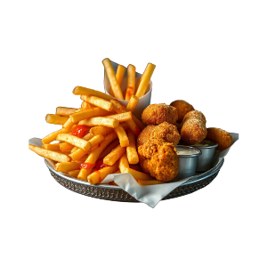 Картофель фри, картофельные дольки, луковые кольца, крылышки острые, сырные палочки, наггетсы, все соусы