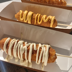 Сосиска в кукурузной панировке. Сырный, кисло-сладкий, чесночный, барбекю, 1000 островов, острый, терияки (укажите в комментариях )
